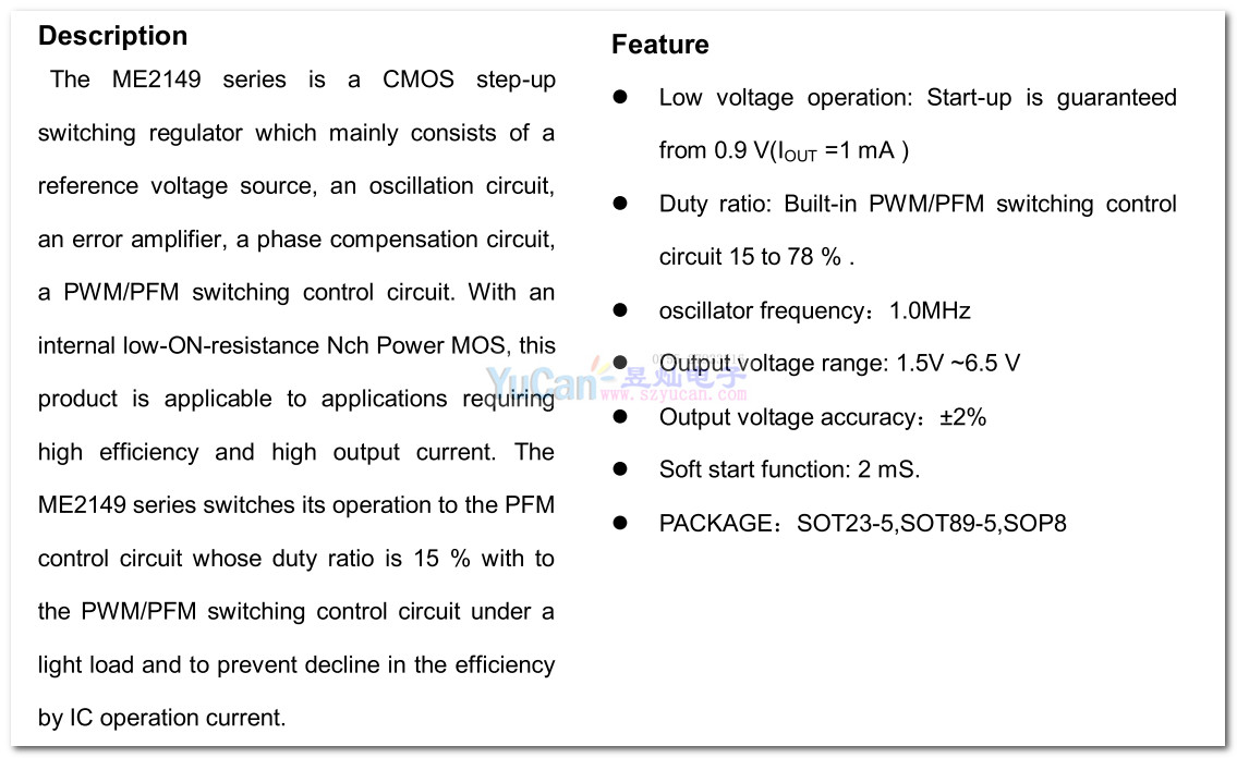 ME2149 ME2149系列是內(nèi)置mos升壓,自動(dòng)PWM/ PFM切換控制電路